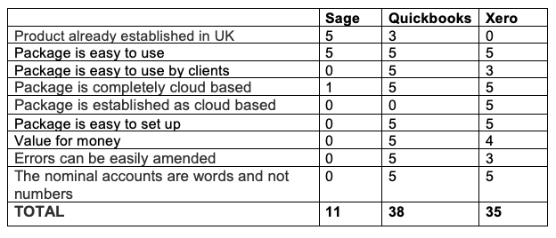 The package we selected was not going to be the one that would be based on how easy it was for us to translate the clients bookkeeping or even how easy it would be for us to correct the clients bookkeeping.