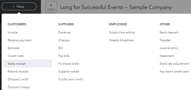 Step 1 – Open the Sales Receipt page: