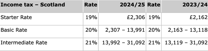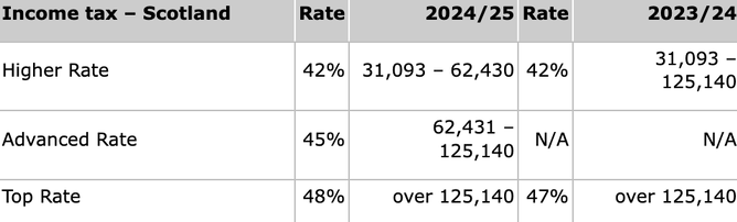 Scottish rates and bands do not apply for savings and dividend income, which are taxed at normal UK rates.