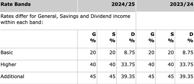 Tax rates and allowances – 2024/25 (Table A)